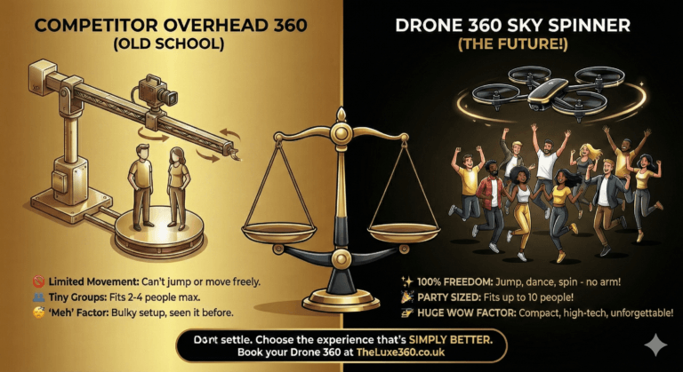 Experience the UK's First Drone Sky Spinner 360 Video Booth -Where Glambot meets 360 magic!