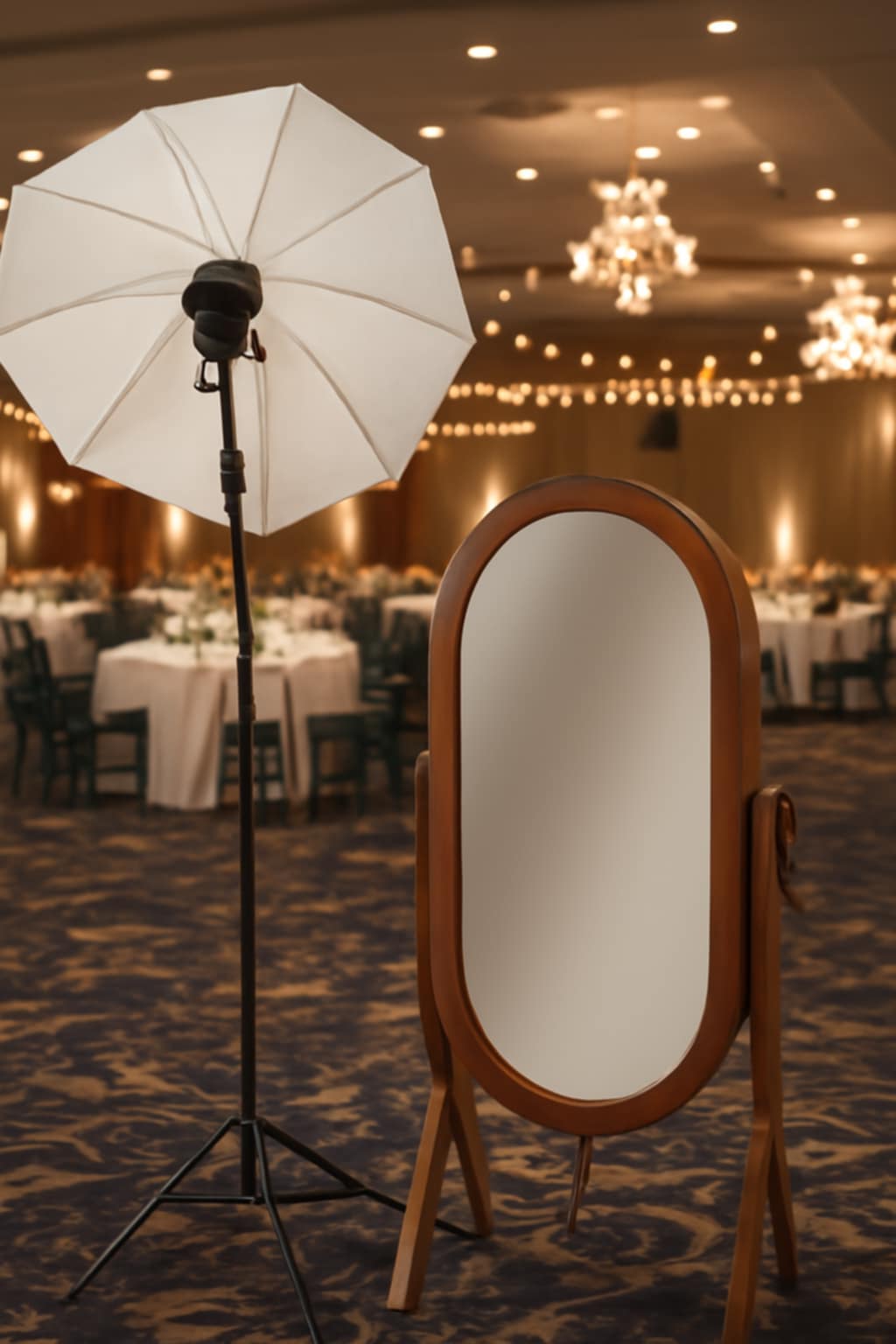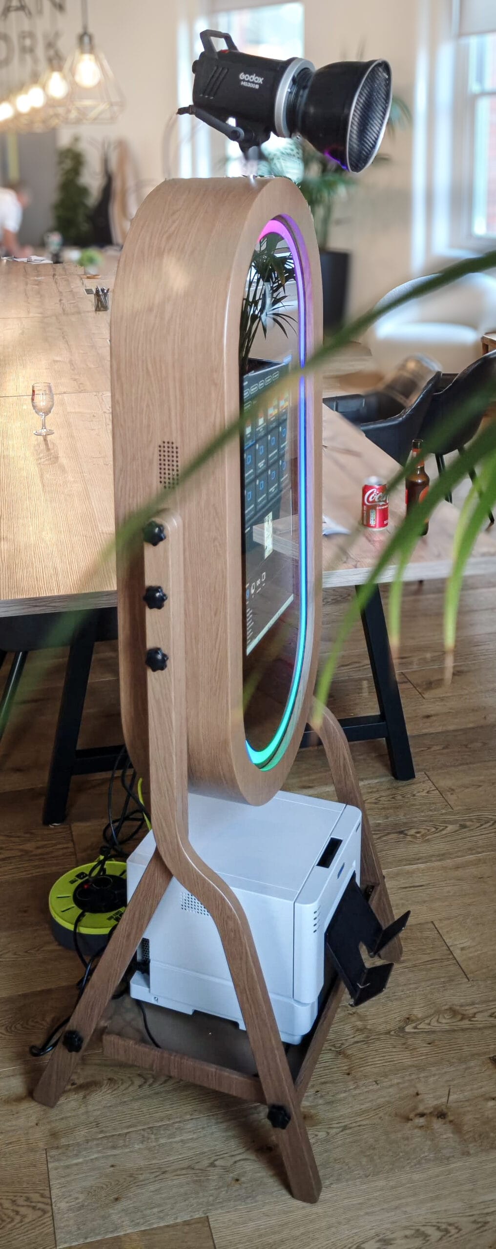 This premium, wooden mirror is equipped with the latest Photo Booth features, creating a stunning and luxurious experience for your guests.