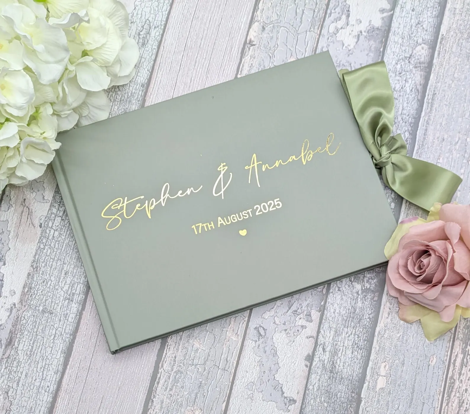 Our luxury guestbook s inluded. The guestbook add-on includes the book itself, along with extra prints, glue, and pens for a complete experience.
